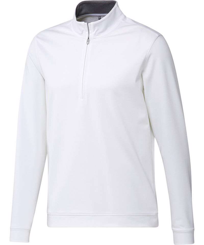 Be prepared for cool weather in this men’s adidas golf sweatshirt. The soft fabric has built-in stretch for full mobility. Banded sleeves and hem seal out the chill. The half-zip design makes it easy to pull off when the temperature rises. Made with a series of recycled materials, and at least 70% recycled content, this product represents just one of our solutions to help end plastic waste.