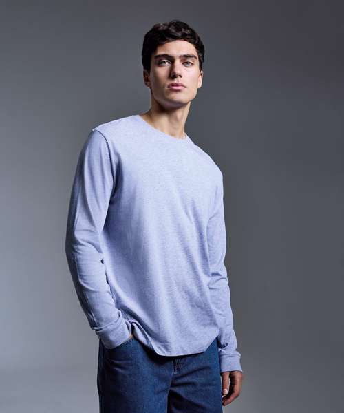 Solid colours are 100% organic cotton. Marl colours 60% cotton and 40% recycled polyester. 32's cotton count. Retail fashion fit. Soft-feel finish. Ribbed crew neck. Twin-needling detailing on shoulders and around back of neck. Cut and sew one by one ribbed cuff. Grown-on hem with twin-needle stitch. Mitred vent to both sides of t-shirt. Self-coloured neck size label.
