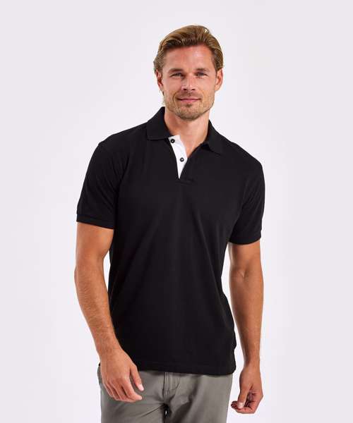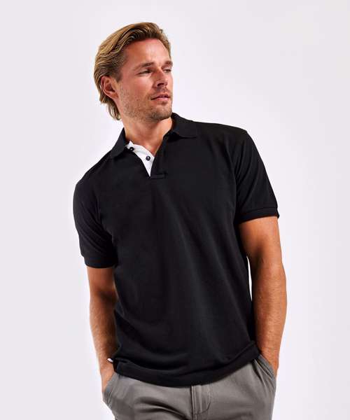 Classic fit polo with contrast colour detail on the placket and under the collar. 2 buttons to the placket. Short sleeves. Side vents. Knitted collar and cuffs. Machine washable. Product contains no branded neck label. Removable Kimble or looped garment tags. Inner seam label holds important product information on one label with a second label containing brand information which can be cut-away. Please note old stock may contain a fixed branded label.