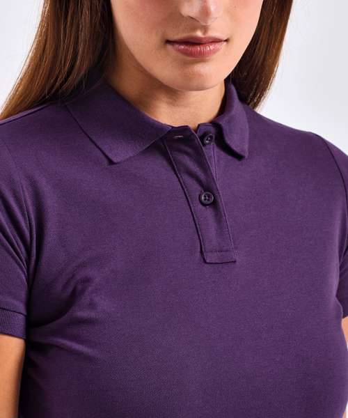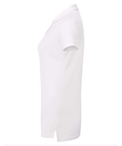 Classic fit polo for women, ribbed knit collar and sleeve cuffs. Twin needle stitching on hem. Two self coloured buttons on placket. Product contains no branded neck label. Removable Kimble or looped garment tags. Inner seam label holds important product information on one label with a second label containing brand information which can be cut-away. Please note old stock may contain a fixed branded label.