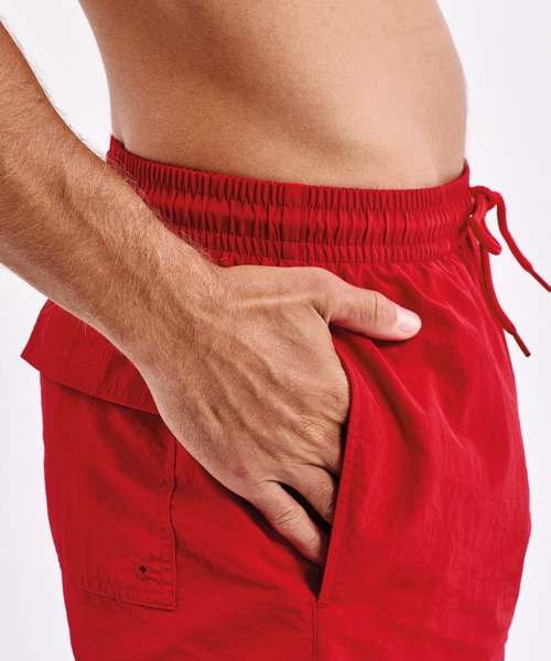 Contrast colour on waist band. Contrasting inner waist band colour. Tie waist. Two eyelets. Striped tie cord. Elasticated waist. Mesh inner lining. Two side pockets with mesh inner lining. Single hook and loop fastening pocket on the back. Product contains no branded neck label. Removable Kimble or looped garment tags. Inner seam label holds important product information on one label with a second label containing brand information which can be cut-away. Please note old stock may contain a fixed branded label.