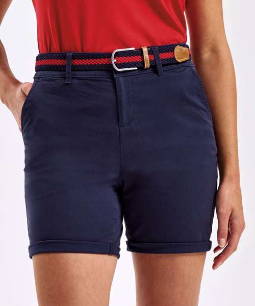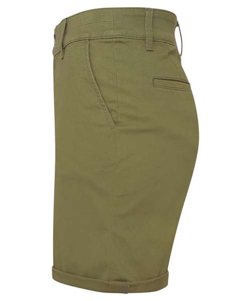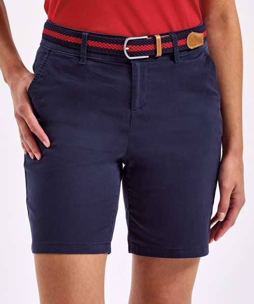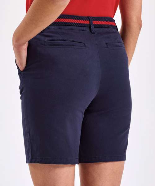 Women’s classic fit shorts in a soft lightweight fabric finish. Zip fly with double button fastening at waist. Belt loops. Two swing pockets to the side and back jetted pockets. Style can be worn rolled up. Product contains no branded neck label. Removable Kimble or looped garment tags. Inner seam label holds important product information on one label with a second label containing brand information which can be cut-away. Please note old stock may contain a fixed branded label.