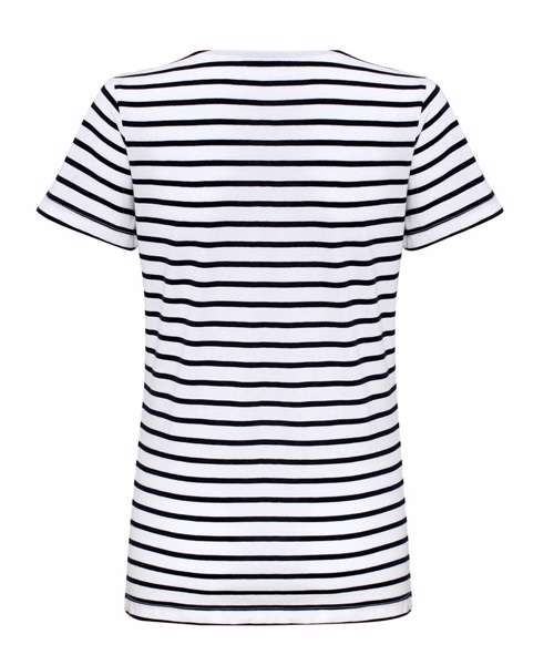 Soft feel fabric. Crew neck. Short Sleeves. Double stitched arm holes and hem. Feminine fit. Product contains no branded neck label. Removable Kimble or looped garment tags. Inner seam label holds important product information on one label with a second label containing brand information which can be cut-away. Please note old stock may contain a fixed branded label.