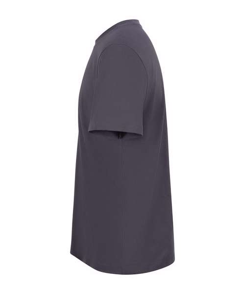 Relaxed fit T. Short sleeves. Side seams. PurePrint BC Cotton fabric. Taped back neck. Twin needle stitch details. Ribbed crew neck.