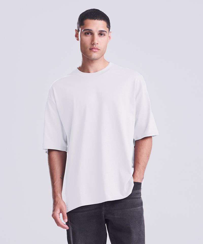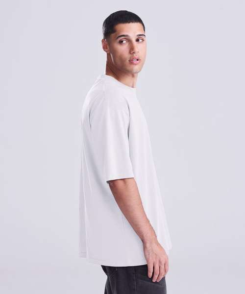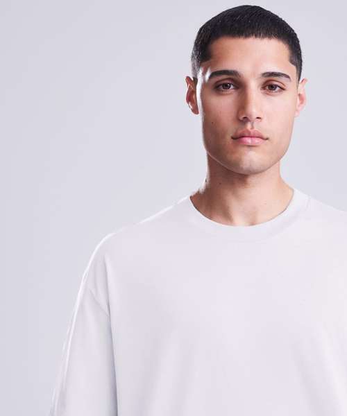 Boxy, oversized fit. Side seams. Cotton PurePrint fabric. Excellent surface for print or embroidery. Taped back neck. Ribbed crew neck. Twin-needle stitching details. Size label only, for easy rebranding.