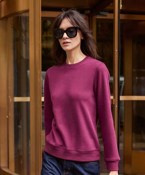 Elegant, luxurious and comfortable crew neck sweatshirt for women. Side seamed. Identical colours for men and women. Ultra-soft, peached feel, 100% cotton-faced fabric with ultimate printing surface. Qualitative long-lasting neck tape. Single Jersey half moon in the back.