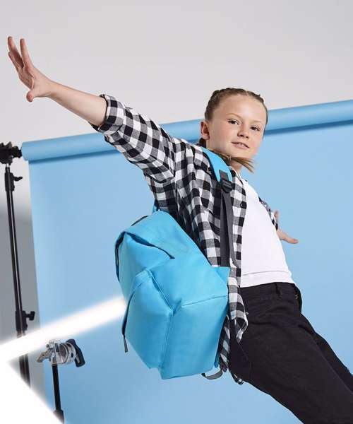 Padded adjustable shoulder straps. Zippered front pocket. Padded back panel. Grab handle. TearAway label for ease of rebranding.