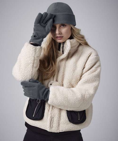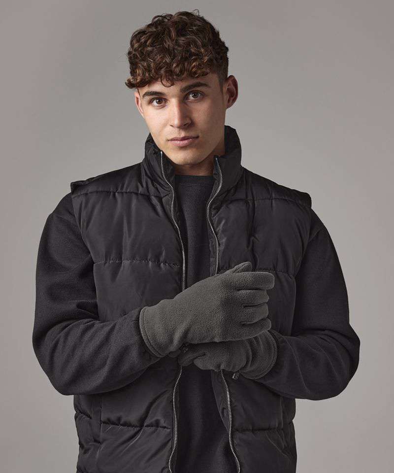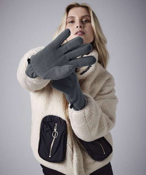 Made from 100% certified recycled polyester. These well-fitting and highly-insulating gloves are a winter accessory essential. The short-pile, anti-pill fleece is soft to the touch, while an elasticated wrist and stretch fit ensures maximum comfort. This practical unisex design also features a connective clip for added convenience.