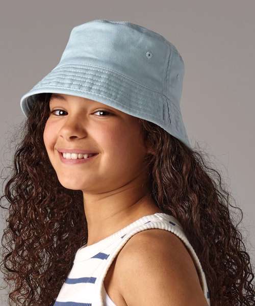 100% Organic cotton twill. Lining: Polyester cotton blend. Contains 100% certified organic cotton. Protection against sunlight – UPF50+. Unisex styling. Stitched ventilation eyelets. Fully lined. TearAway label for easy rebranding. Available in two sizes – S/M (3–6 years) and M/L (7–12 years).