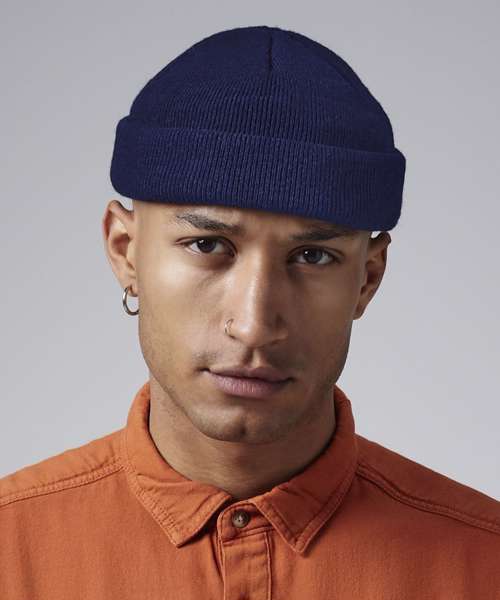 Once reserved solely for workwear-inspired looks, the mini fisherman beanie has evolved into a popular street style essential. This mini pull-on style, featuring a double turn-up cuff, is a close-fitting beanie designed to sit on top of the head, just above the ears. Made from 100% certified recycled polyester, this neat design is perfect as both a sustainable and a fashionable choice.