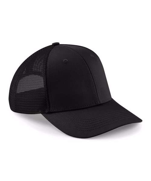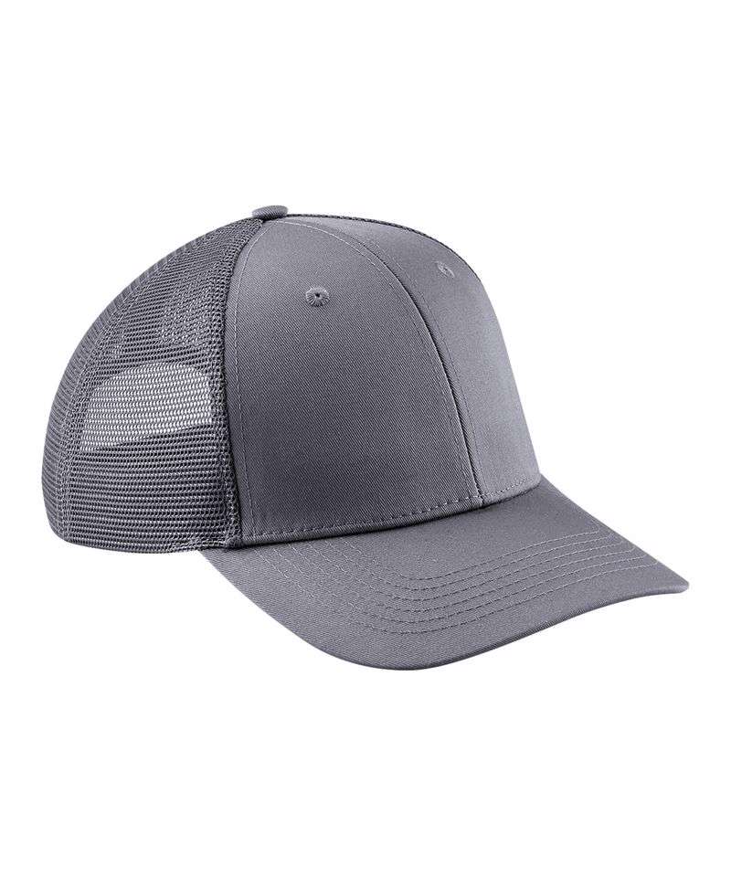 Front panel and peak: 85% Polyester, 15% Cotton. Rear panels: 100% Polyester mesh