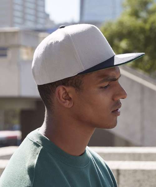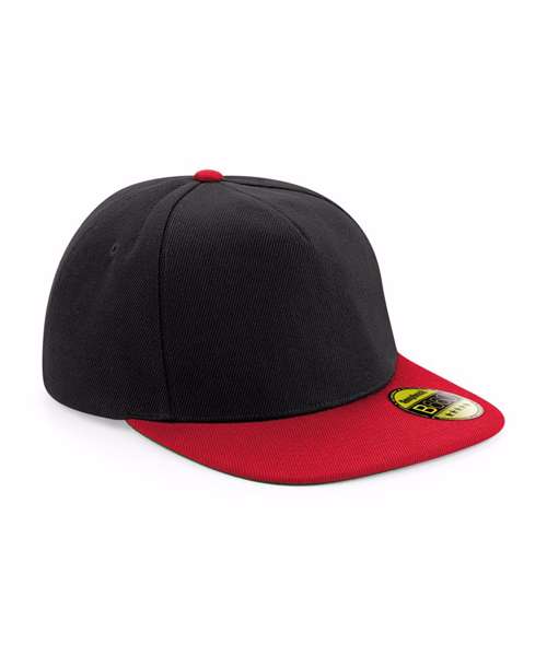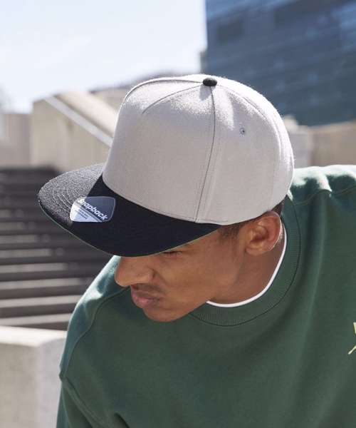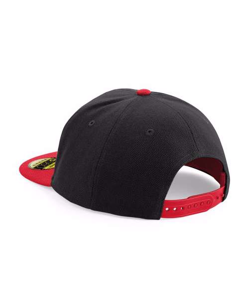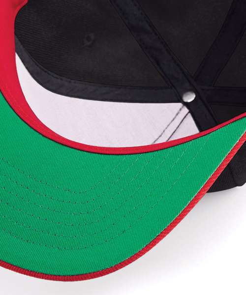 Flat peak. Green underpeak. Retro style snapback size adjuster. Authentic peak sticker. Stitched ventilation eyelets.