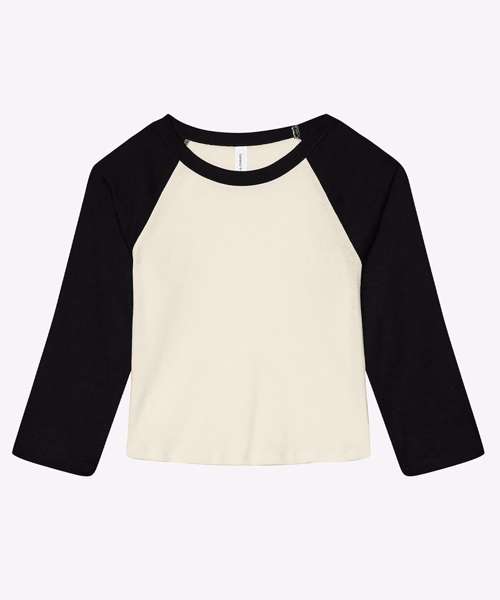 It’s a home run. The iconic baseball 3/4 sleeve tee just made it to the big leagues with the game-changing softness of 1x1 micro rib, a silhouette-flattering fit and a versatile mid-length hem. This must-have style features classic contrast raglan sleeves and crew neck binding, making it a star player.