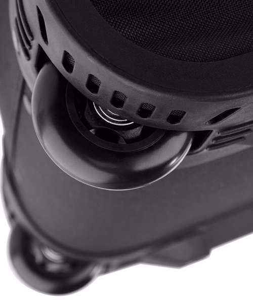 Detachable adjustable shoulder strap with pad, padded hand grip, compression straps. Zippered pouch pocket. Heavy duty handles. Durable integrated skate wheels. Grab handle. Retractable twin tube locking tow handle. Lockable main zip.