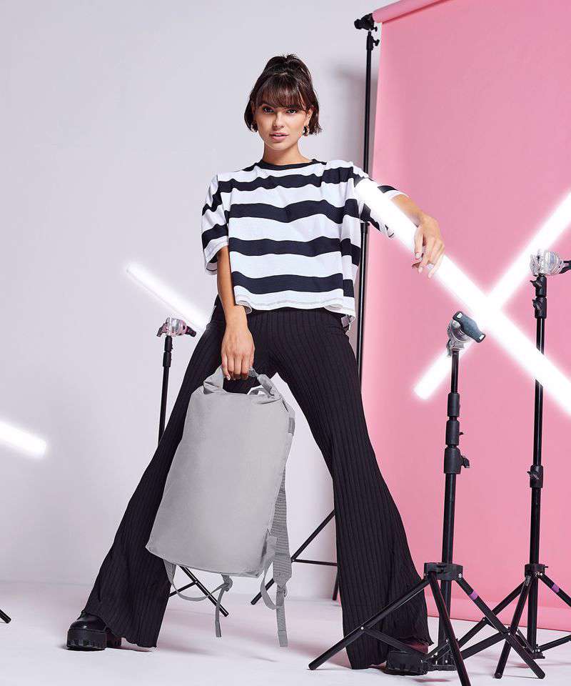 The icon roll-top backpack offers a reworked silhouette with identifiable, fashion-led features. A cool roll-top opening and padded shoulder straps offer mass appeal to those looking for a comfortable alternative on the classic gymsac style.