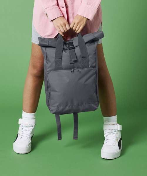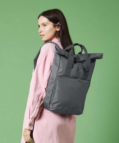 Discover a cool range of heritage colourways with the twin handle roll-top backpack. Featuring a dynamic roll-top design and square silhouette, retailers can easily add surface decoration to this vibrant fashion-led style.