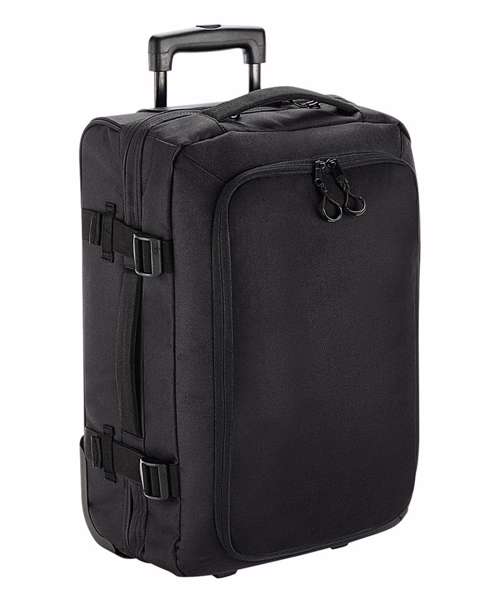 TearAway label for ease of rebranding. Convenient dual compartment design for easy packing. Lockable main compartment zip. Large zippered front compartment with internal mesh divider. Zippered internal pocket. Dual compression straps. Padded top and side handles. High stability retractable twin-handle. Aircraft cabin compatible - suitable for most airlines. Durable integrated skate wheels. Can be further customised with BG485 Escape handle wrap. Padded laptop compartment, compatible up to 15.6".