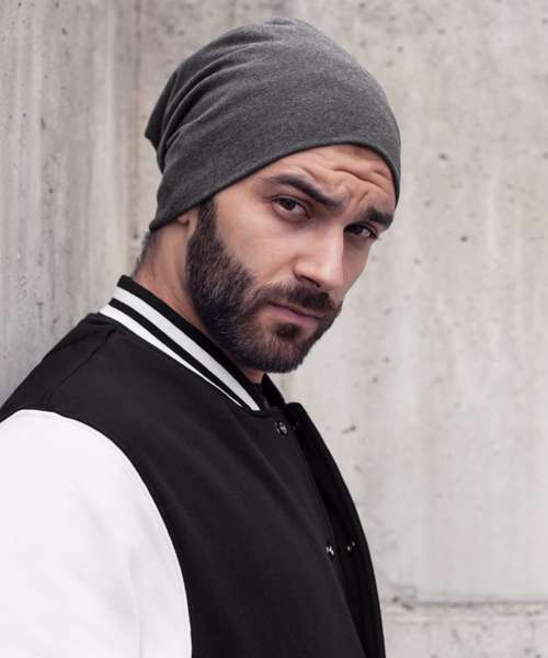The soft fabric and the seamless hem make the Jersey beanie your stylish companion in wind and weather. The practical length of 22 cm makes a cool look. The beanie is available in neutral colours and useable for screen printing, transfer printing and embroidery.