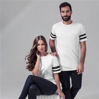 The trendy double stripes of the stripe Jersey tee from Build Your Brand come in contrast colours and fashionable attached herringbone tapes. The soft single Jersey and casual cut ensure a comfortable fit. This product is ideal for rebranding, print and embroidery. Oeko-Tex certified.