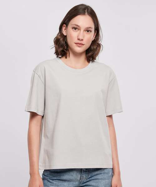 This short-sleeved, single-coloured women’s tee radiates a simple and calm style with a casual oversized cut and dropped shoulders. The cotton fabric ensures perfect comfort for the wearer, while the ribbed crew neck provides another style highlight. It’s suitable for further refinement with flock printing, screen printing or embroidery.