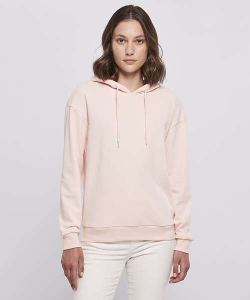 Presenting a hood with drawstrings and wide rib cuffs on sleeves and hem, this sporty women’s hoodie should be a basic piece of clothing of every wardrobe. The comfy oversize fit, with dropped shoulders, fits perfectly with the overall design. The hoodie is made of an uncomplicated cotton-polyester mix which can be further refined with embroidery, screen or flock printing.