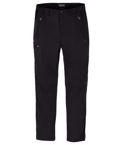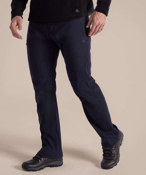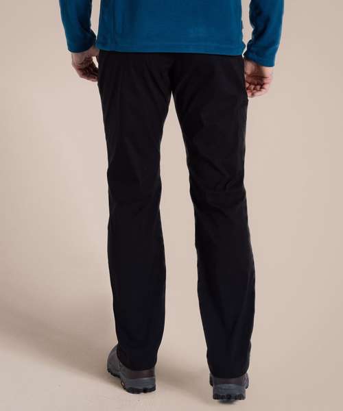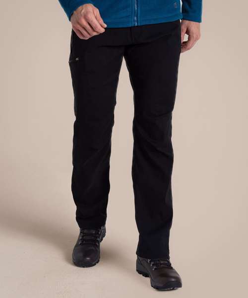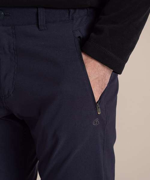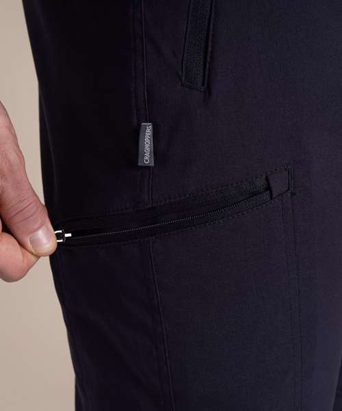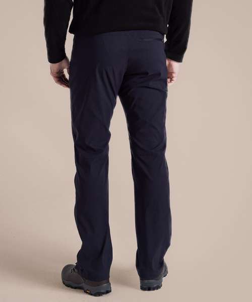 Stretch trousers with water-resistant finish, featuring 4 pockets. Stretch recycled polyamide elastane with EcoShield DWR finish. 100% recycled zip tapes. UPF 40+ sun protection and SolarShield technology. EN1378-2.