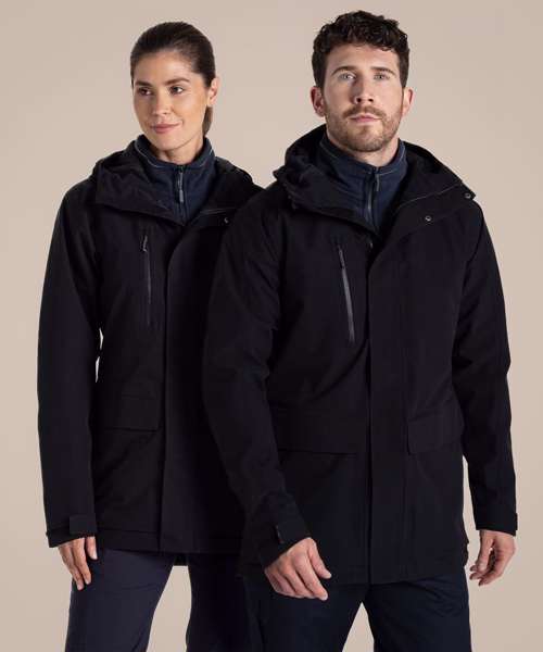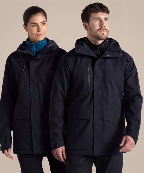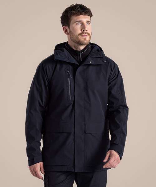 Cool wash with Craghoppers AquaDry waterproof cleaner or pure soap. Wash with similar colours. Do not use bleach or water softeners. Do not use fabric conditioners. Rinse well. Remove immediately after wash. Can be tumble dried on a low setting. Cool iron, if needed, on the outer side of the fabric. Do not dry clean. Do no wring. Close all fasteners before washing and drying. Use Craghoppers AquaDry reproofer if needed. Apply heat as per care instructions if DWR needs regenerating. Fabric may be damaged by solvents, alcohols and insecticides.