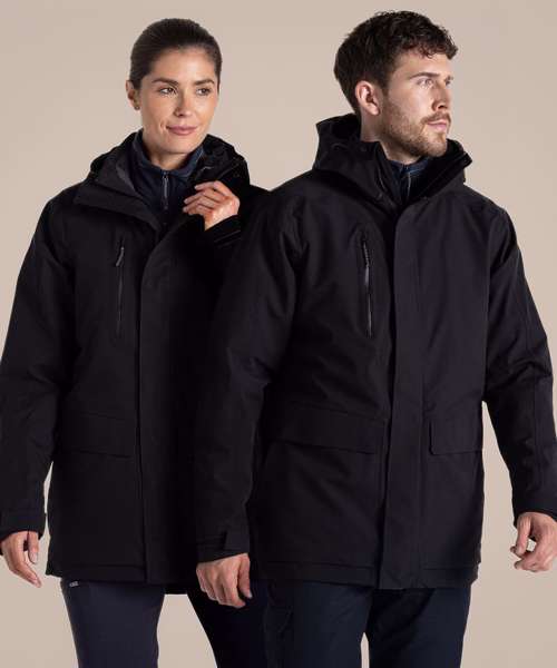 Cool wash with Craghoppers AquaDry waterproof cleaner or pure soap. Wash with similar colours. Do not use bleach or water softeners. Do not use fabric conditioners. Rinse well. Remove immediately after wash. Can be tumble dried on a low setting. Cool iron, if needed, on the outer side of the fabric. Do not dry clean. Do no wring. Close all fasteners before washing and drying. Use Craghoppers AquaDry reproofer if needed. Apply heat as per care instructions if DWR needs regenerating. Fabric may be damaged by solvents, alcohols and insecticides.