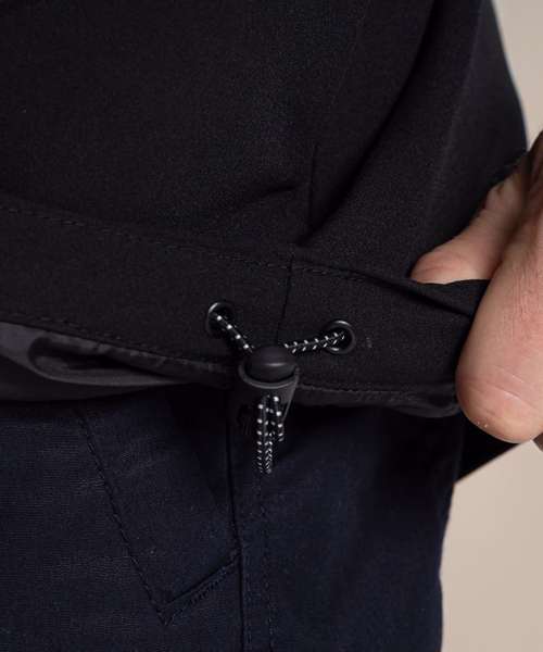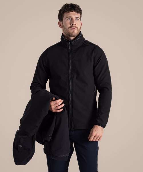 3-in-1 jacket. Waterproof and breathable shell outer with a softshell inner jacket. 10,000mm waterproof and 20,000g/ m2/ 24hrs breathable. Recycled polyester stretch mesh and recycled polyester taffeta lining outer. Recycled polyester elastane softshell with EcoShield DWR finish and striped microfleece back inner.