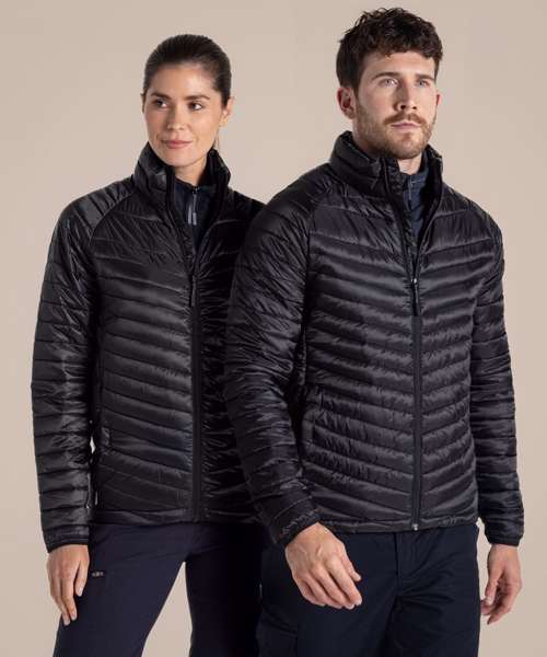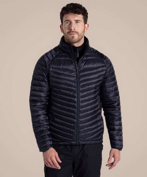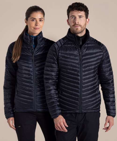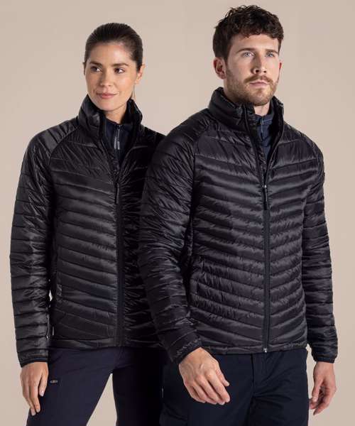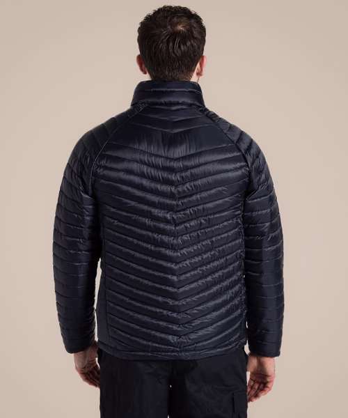 Water-resistant padded jacket with a full-length zip and 4 pockets, one of which doubles as a stow pocket. Recycled polyester mini ripstop with EcoShield DWR finish outer and lining. ThermoPro recycled polyester fill and recycled zip tapes. 4 pockets: 2 welted zipped lower, 1 concealed zipped inner and1 passport RFID.