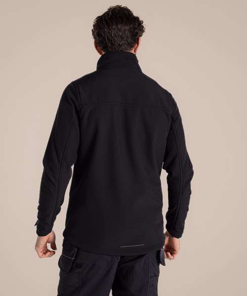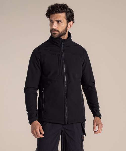 Part recycled polyester elastane softshell with borg back, AquaDry Membrane, H2OShield DWR finish and part recycled zip tapes. GRS Certified fabrics, ETI factories, REACH compliant.