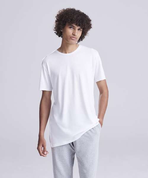 80% LENZING™ ECOVERO™, 20% organic cotton. Single Jersey. Ribbed collar. Taped neck. Side seams – non tubular body. Twin-needle detail at hem and sleeve. Set-in sleeves. Crew neck. Fashion fit. Size label only for easy rebranding.