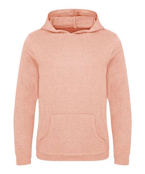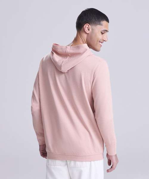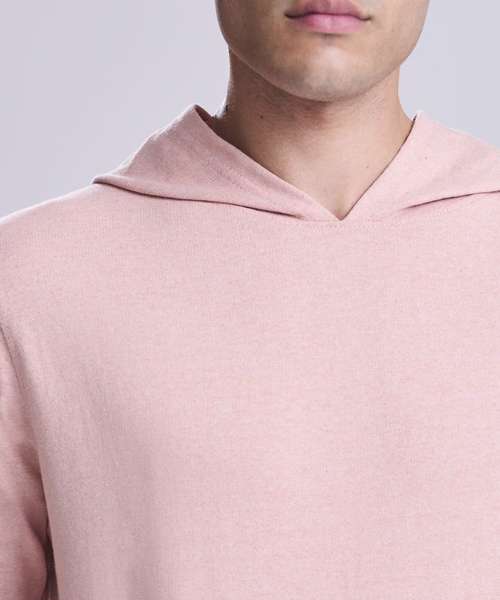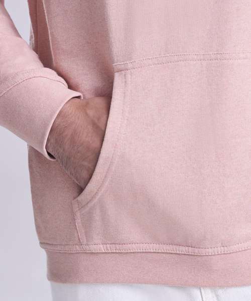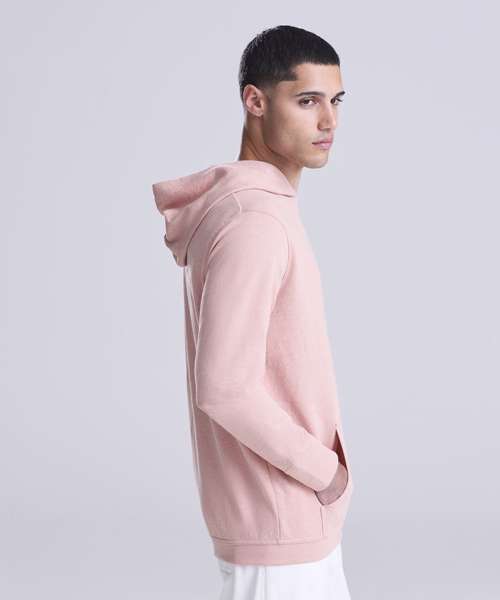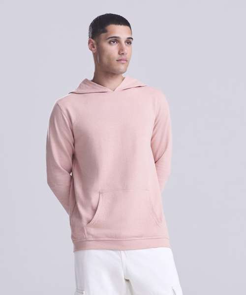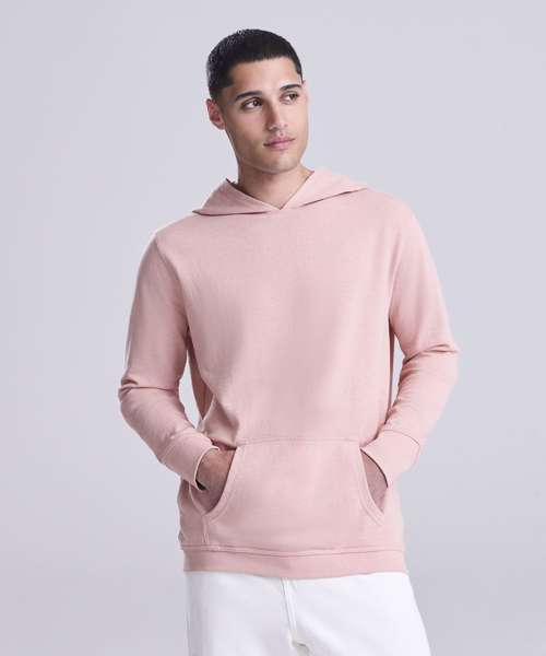 Long sleeve regenerated cotton hoody with French terry construction. Features include set-in sleeves, angled rib at cuffs, ribbed hem and kangaroo pocket.