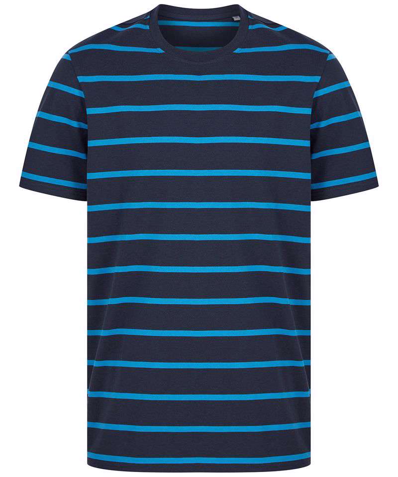 Heavyweight striped T. Relaxed fit. Plain stretch rib neck. Single Jersey back neck tape. Twin-needle stitching on sleeves and hem. Tag-free for easy rebranding.