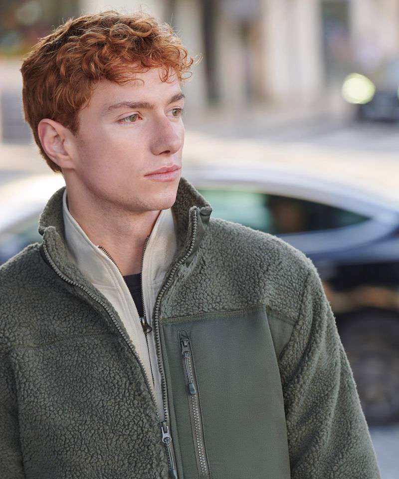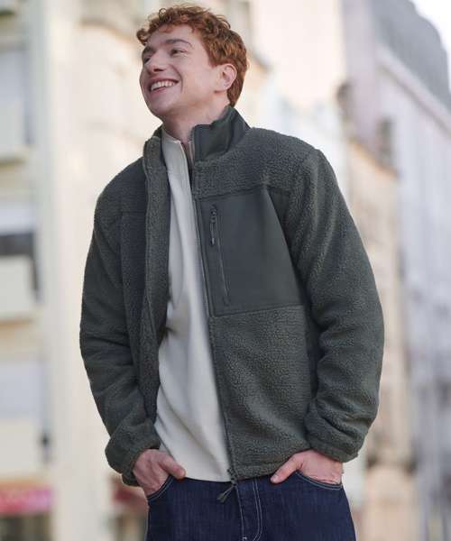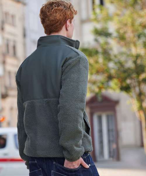 Zip-through fleece jacket, regular fit. Lined with embroidery access. Contrast funnel collar, fleece inner. Flatlock-stitched contrast panels – 100% cotton twill. Front chest pocket with zip. Welt side pockets with popper fastening. Elasticated cuffs. Curved hem with elasticated cord. Tag-free for easy rebranding.