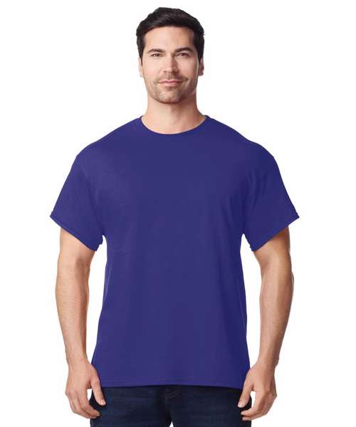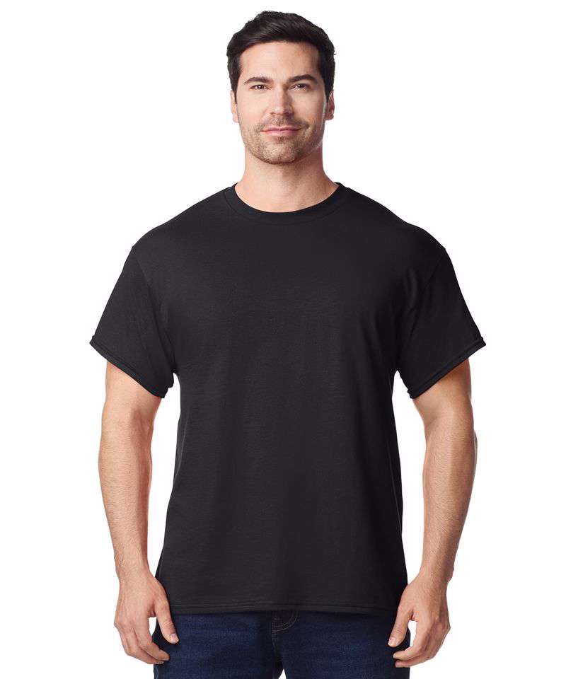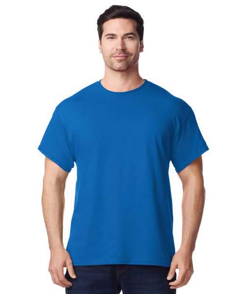 100% cotton pre-shrunk jersey knit. Seamless twin needle 7/8" collar. Taped neck and shoulders. Twin needle sleeve and bottom hems. Quarter turned to eliminate centre crease.
