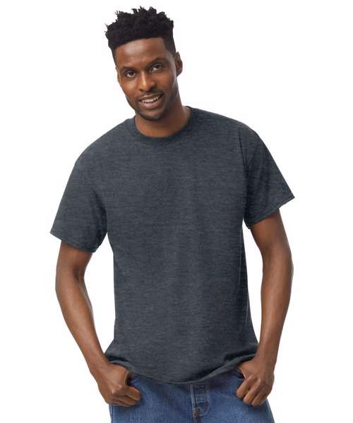 100% US Cotton. Ash: 99% US Cotton, 1% Polyester. Sport Grey and Antiques: 90% US Cotton, 10% Polyester. Blackberry, Graphite Heather, Lilac, Midnight, Russet, Safety Green, Sunset and Tweed: 50% US Cotton, 50% Polyester