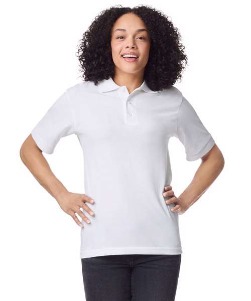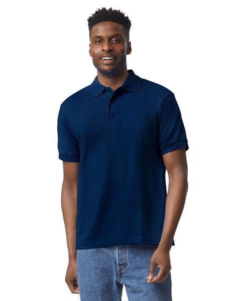 DryBlend® technology delivers moisture-wicking properties. Contoured welt collar and cuffs. Tearaway label. Clean finished placket with reinforced bottom box. 3 woodtone buttons. Twin-needle bottom hem.