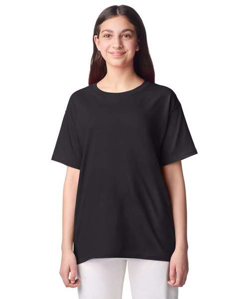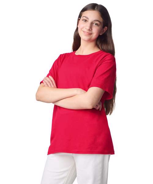High-stitch density fabric made from 30/1 cotton. Narrow width rib collar, taped nexk and shoulders. Modern classic fit, seamless body with a TearAway label.