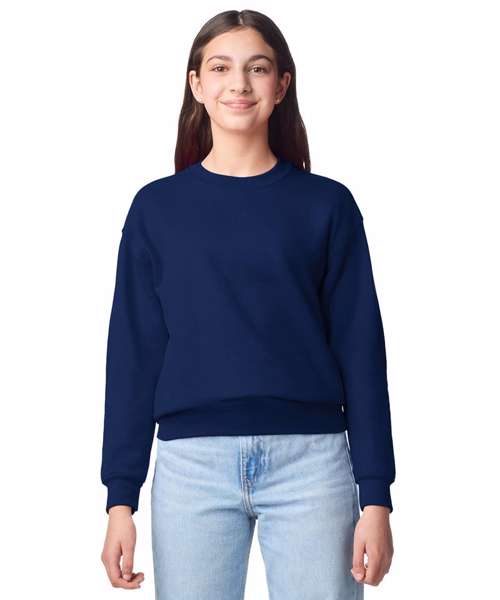 Air jet yarn which has a softer feel and reduced pilling. Tearaway label. Twin-needle stotching at shoulder armhole, neck and waistband. Set-in sleeves. 1x1 rib with elastane. Quarter-turned body to eliminate centre crease. CPSIA tracking label compliant.
