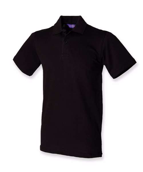 Stretch pique fabric in a slim fitting style with flat knit collar. 2-button placket with dyed to match buttons with side vents for ease of movement.