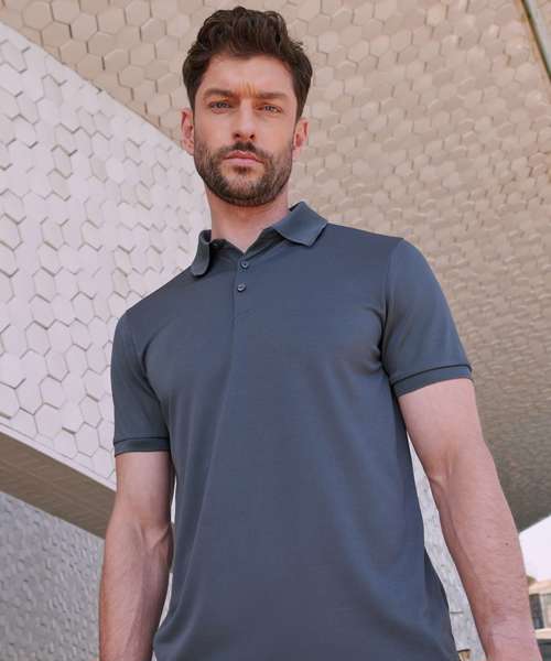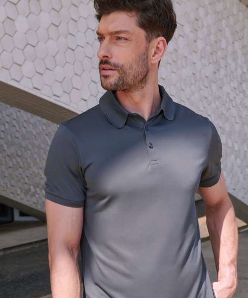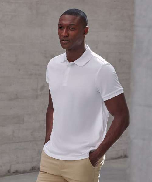 Polo shirt made from recycled polyester yarn with wicking properties. Regular fit with 3 button placket. Henbury stand-up collar. 1x1 ribbed collar and cuffs. Dyed to match buttons.