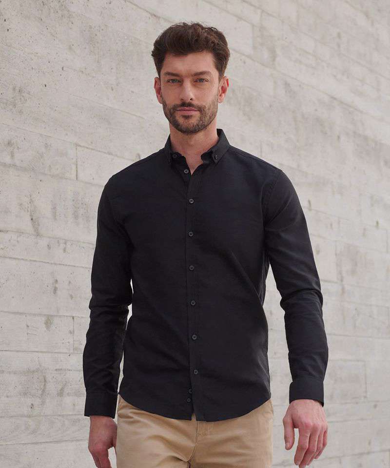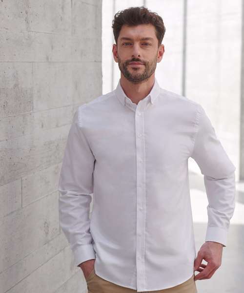 Modern fit, button-down Oxford shirt in classic, regular and slim fit. Cotton-rich lightweight Oxford with wrinkle resistant finish. Short point collar. Pearlised buttons. Adjustable cuff. Tag free.