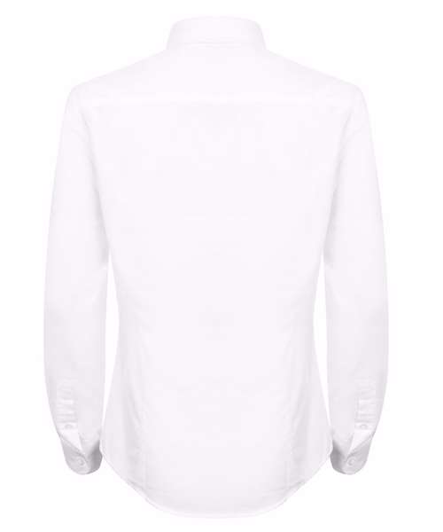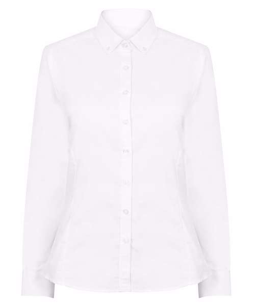 Women's modern fitted, button-down Oxford shirt. Cotton-rich lightweight Oxford with wrinkle resistant finish. Short point collar. Pearlised buttons. Adjustable cuff. Front and back darts for added shape.