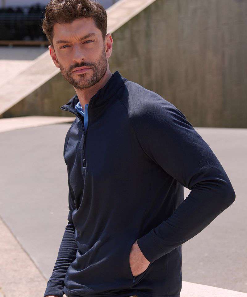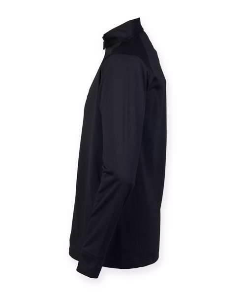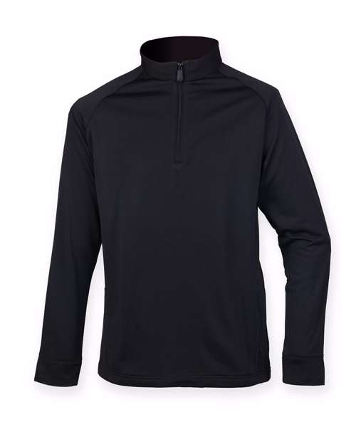 Needle-out face with inner fleece. Raglan sleeves. Side pockets with hidden zippers. Sports zip with self-coloured puller. Henbury Cut-out Brand label.