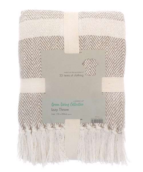The Izzy herringbone-design throw is made from cotton and recycled polyester fabric and features tasselled edges. Throw it over a bed or sofa, or pack it to take to the beach or on a picnic. Machine-washable.