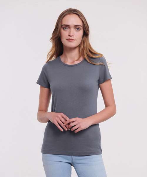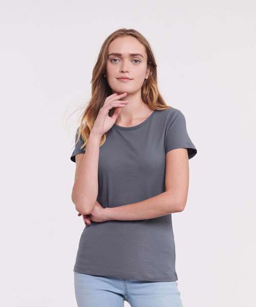 Contemporary shaped fit. Custom developed shoulder to shoulder tape offering greater stability and elegant look. Small size label in the left side of the neck and removable adhesive label. Narrow collar band with lycra. Side-seams improve fit. Comfortable, cool and light texture. Smooth surface for best print results. Contains organic cotton.