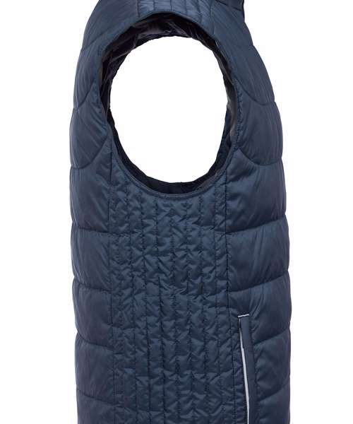High performance DWR fabric treated with Aquapel by Nanotex®. Fluorine and PFC free. Eco-efficient padding by Dupont™ Sorona®. Stand-up collar with chin guard and inner storm flap to ward off wind and draught. Contrasting zips, lining and accents for a refined look. 2 side pockets and 1 zipped inside pocket. Discreet decoration access at inner left chest. Adjustable hem with bungee cord.