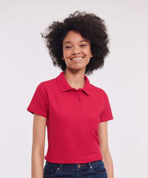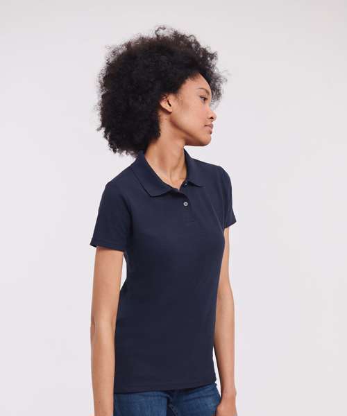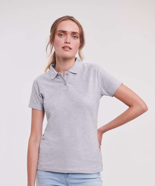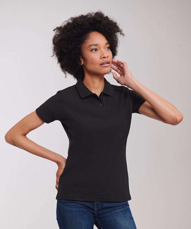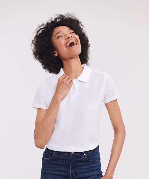 Unique double yarn pique provides an exceptionally soft hand feel and increased shape retention. Neck tape for wearer comfort and durability. Open sleeve with twin needle hem. Side vents for ease of fit. Spare button side seam. Reinforced shoulder seams. Twin needle hem for addded stability. Fitted feminine waist.