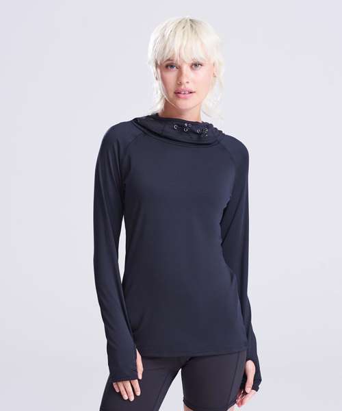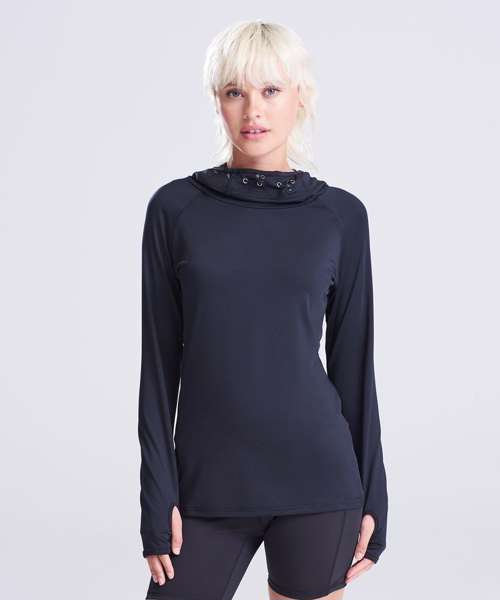 AWDis’ own CoolFit blended fabric containing elastane that provides stretch for comfort and a great fit. Cowl neck style hood. Sporty fit. Ideal for layering. Raglan sleeve design creates ease of movement. Reflective elements on hood for low light conditions. Reflective tab on back of neck helps keep ear phone cords in place. Toggled hood. Flat-lock stitching detail. Thumb hole opening. Simple tear off label makes it perfect for rebranding.